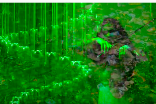 Eine kinetische Rauminstallation von Mark Swysen mit Leila Faust an der Geige in der Galerie FLOX in Dresden, Film: Uwe Nimmrichter