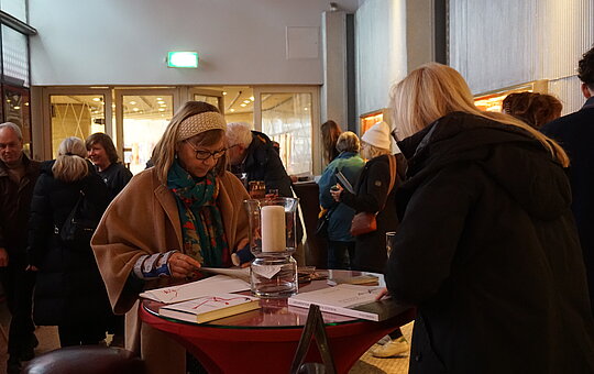 Wie gewohnt fand nach dem Gespräch mit Nathalie David eine Saalverlosung statt, bei der neben signierten Filmplakaten und DVDs und Kino-und Theaterkarten, auch die jüngst erschienene Naegeli-Biografie von Res Strehle (Diogenes 2024) verlost wurde.